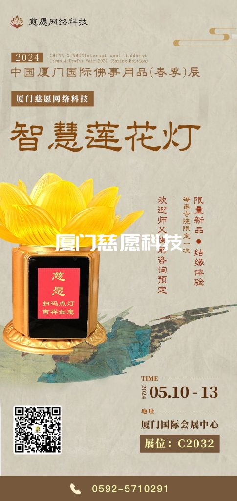廈門慈愿網(wǎng)絡科技有限公司成立于2012年03月,長期服務于傳統(tǒng)民俗文化產(chǎn)業(yè),集設計、生產(chǎn)、研發(fā)和銷售為一體,致力于成為行業(yè)內(nèi)領先的信息化技術服務提供商。結合前沿的人工智能和互聯(lián)網(wǎng)技術,為寺院量身打造寺院信息管理系統(tǒng)(包括掛單管理、牌位管理、牌位打印系統(tǒng)、電子牌位、智能蓮花燈、電子功德箱等)、智慧祈福燈(智能萬佛墻、千佛墻、光明燈)、智能骨灰存放架等產(chǎn)品,為廠家及經(jīng)銷商提供佛具用品交易平臺全方位的信息技術解決方案。